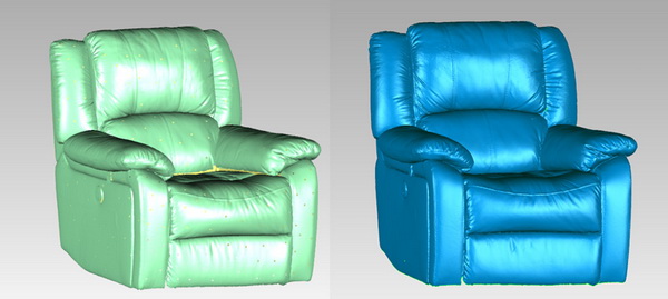 整個過程快速便捷地獲取皮沙發(fā)的三維數(shù)據(jù),將沙發(fā)真實還原,展現(xiàn)在PC端、移動端,使顧家家居的客戶能更方便、更全面地在線上就能了解其產品細節(jié),為顧家家居實現(xiàn)AR購物技術上邁出了第一步。更能迎合科技潮流,用三維展示技術讓消費者更加全面得了解產品特點和細節(jié),同時通過三維展示技術提高家具的宣傳質量和效果。而三維展示必不可少的前提就是要有三維數(shù)據(jù)。傳統(tǒng)的方法是通過人工三維建模獲得與產品外觀相近的三維模型。這種方法不僅耗時,而且模型的真實度也不高,特別是一些細節(jié),靠人工建模雕刻很難復現(xiàn)。文程數(shù)碼科技能夠提供一種更加方便快捷,模型的細節(jié)也更加真實的獲取三維模型的方法。不僅提高了獲取三維模型的效率,還提高三維模型的質量,通過后期處理獲得清晰逼真的三維模型,完美解決家居的問題。